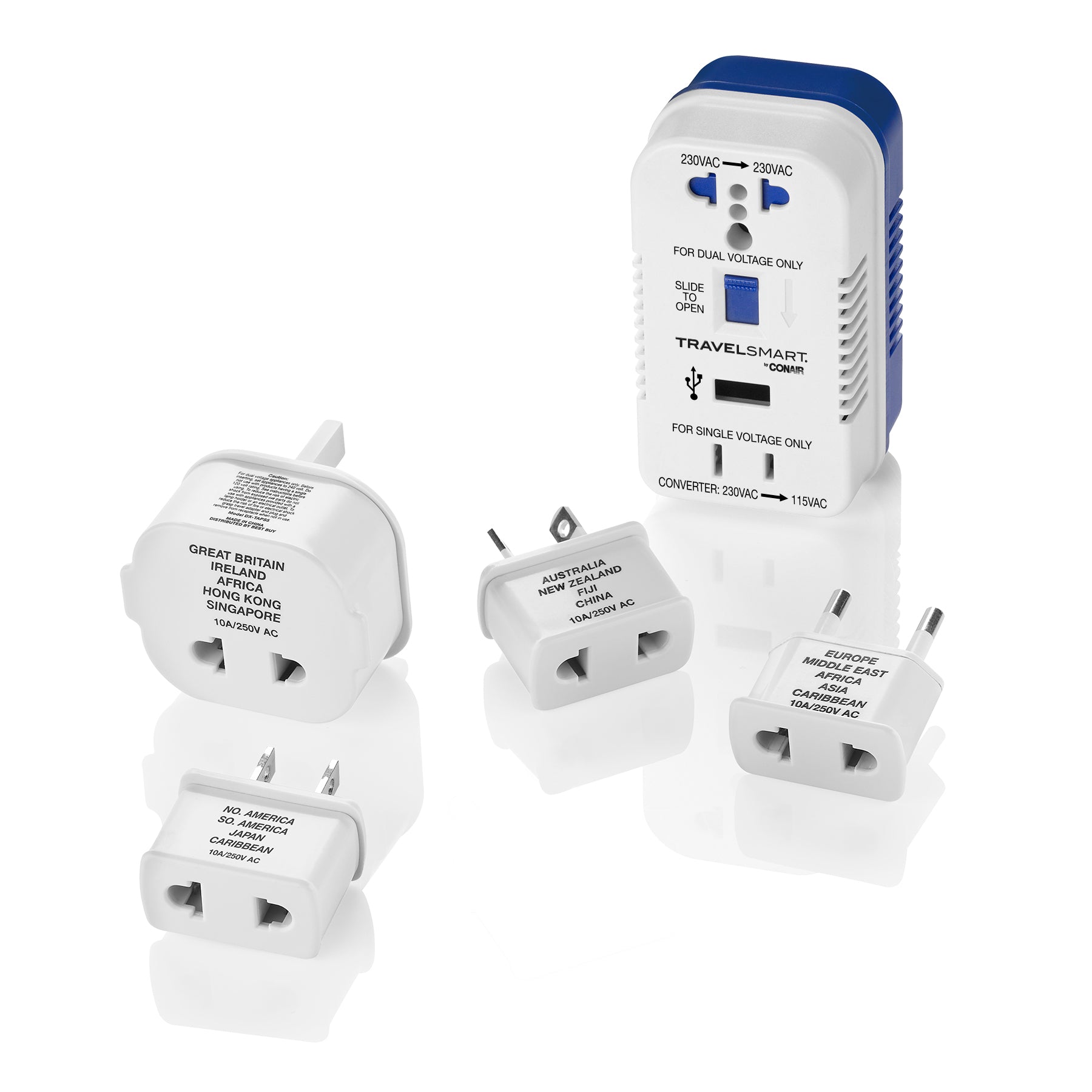 This 1875-watt electrical converter is designed to help you operate your dual voltage appliances worldwide. Plug in up to three devices at once using the polarized adapter plugs and the converter unit. There's an outlet that can be used as a basic plug adapter for dual voltage applications, another outlet that converts foreign 220V/240V electricity to 110/120V for 26–1875 watt appliances and a 1A USB port to charge your USB devices. Your devices and appliances are safeguarded against electrical spikes and surges with the built-in surge protector.